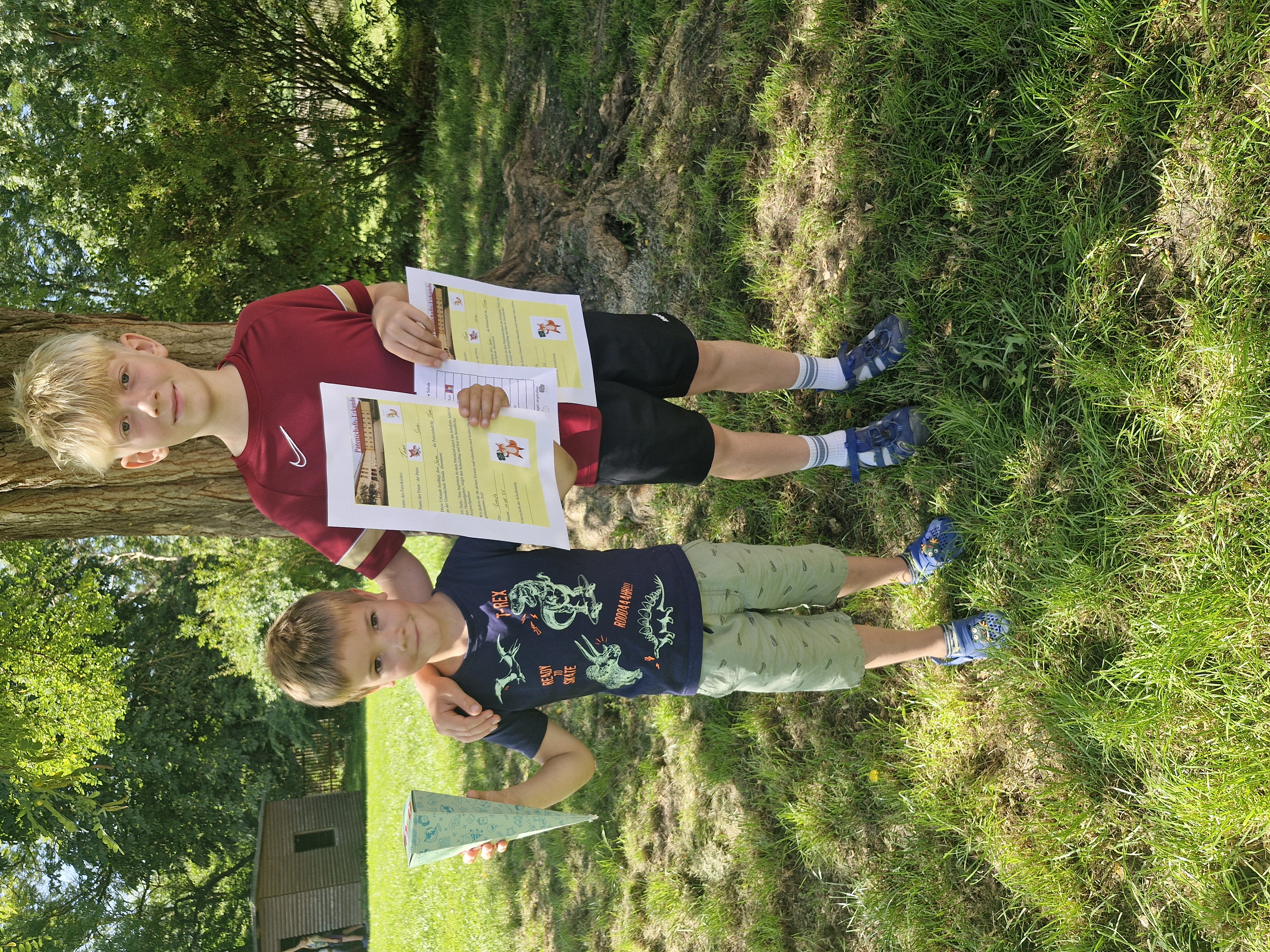 Am Dienstag, den 24. Juni 2025 wanderten die Kinder aller Klassenstufen sowie das Lehrer- und Erzieherteam in den nahegelegenen Wald. Bei strahlendem Sonnenschein sammelten die Kinder während der Wanderung emsig verschiedene Waldschätze in ihren dafür vorbereiteten Eierpappen. An das gemeinsame Picknick auf der Wiese schloss ein abenteuerlicher Aufstieg in den Wald an. Angekommen im Wald bildeten sich Grüppchen, die sich mit Energie und Ausdauer dem Waldhüttchenbau widmeten.