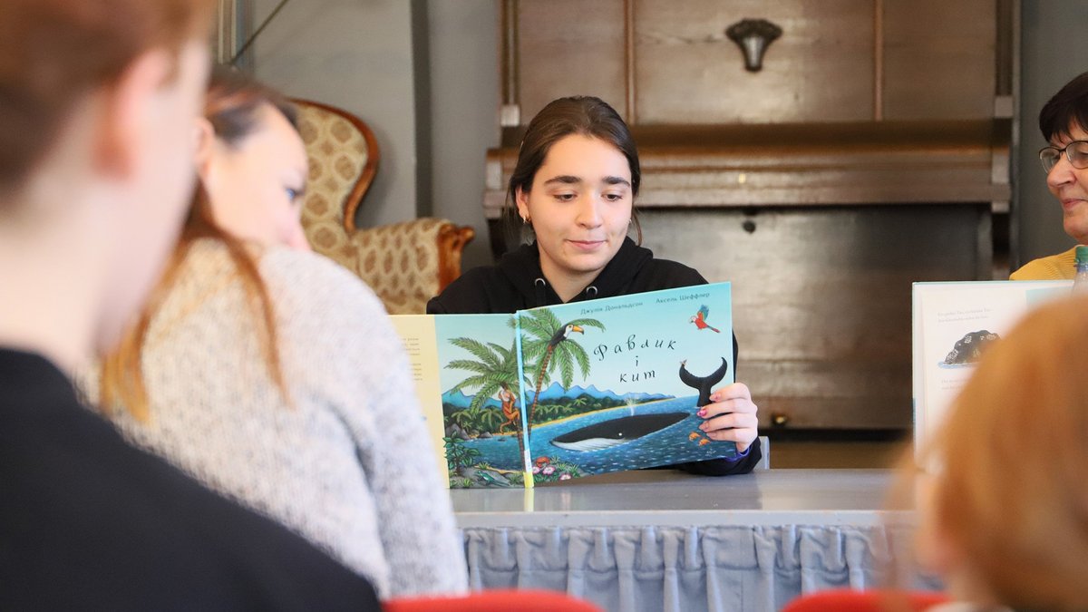 Bibliothek erhält ukrainische Bücher und liest daraus vor